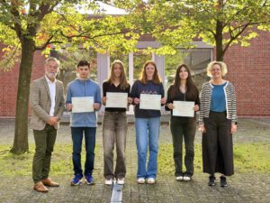 DELF-Erfolg auf ganzer Linie Fünf engagierte Schüler:innen unserer Schule (Stella Ban, Muhammed Özkan, Marleen Schneuing, Lena Tietmeyer und Amina Wane) haben in diesem Jahr erfolgreich