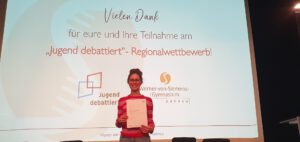 Zwei Schüler:innen des SGO nahmen am Regionalwettbewerb Jugend debattiert in Gronau teil „Es macht mir Spaß, andere mit dem gesprochenen Wort zu überzeugen“. Die 15-jährige