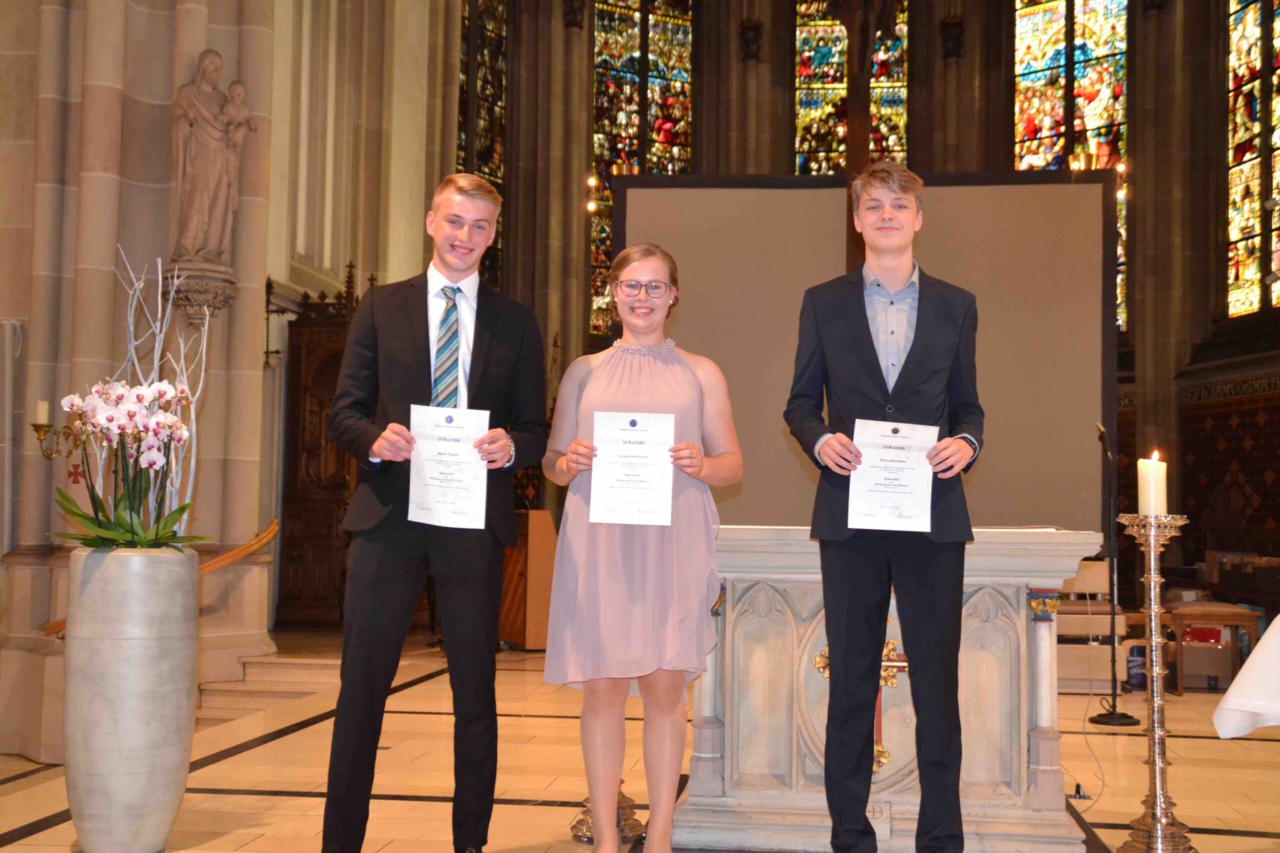 84 Abiturientinnen und Abiturienten nahmen in feierlichem Rahmen in der Lambertikirche in Ochtrup ihre Abiturzeugnisse entgegen. „Ein ganz besonderer Jahrgang“, lobten die Jahrgangsleiter Niklas Hoffmann und Oliver Ebbing, während Schulleiter Olaf Reitenbach die Abiturientinnen und Abiturienten ermunterte, sich mit ihrem Forschergeist immer wieder neuen Herausforderungen zu stellen. Die Ehrung der Jahrgangsbesten und der Stipendiaten der „Hammes Stiftung“ waren weitere Highlights der Abschlussfeier. Das Jahrgangssprecherteam Jacqueline Kühnel, Carla Averbeck und Philipp Wieling ließen witzige Ereignisse aus dem Schulleben Revue passieren und die Elternvertreterinnen Ute Pont und Ulla Averbeck berichteten vom Stolz aller Eltern auf die Leistung ihrer Kinder und versprachen ihnen Unterstützung auf ihrem weiteren Weg.
