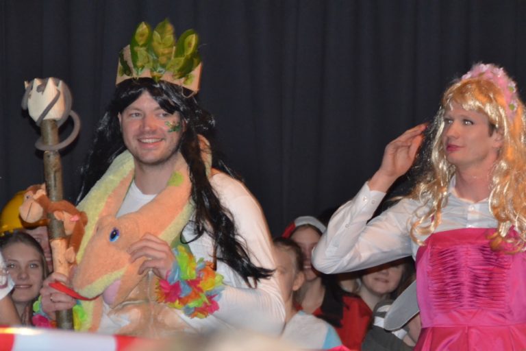 An Weiberfastnacht dürfen die Klassen 5 und 6 jeweils einen Lehrer oder eine Lehrerin verkleiden. In diesem Jahr betraten, unterstützt von den Klassensprecherteams, viele in rosa gekleidete männliche Lehrkörper die Bühne in der karnevalistisch geschmückten Aula. Torsten Mühlemeier überzeugte als Lillifee mit einer wunderbaren Tanzeinlage und brachte das Applausometer zum Brodeln. Das Siegerkrönchen war ihm sicher, woran auch die Dschungelprinzessin, alias Dominik Hüser, trotz Bikinis in Tarnfarben und eines aufgemalten Waschbrettbauchs nichts mehr ändern konnte. Das Orgateam der EF hat den jüngeren SchülerInnen wieder eine vergnügliche Veranstaltung geboten.