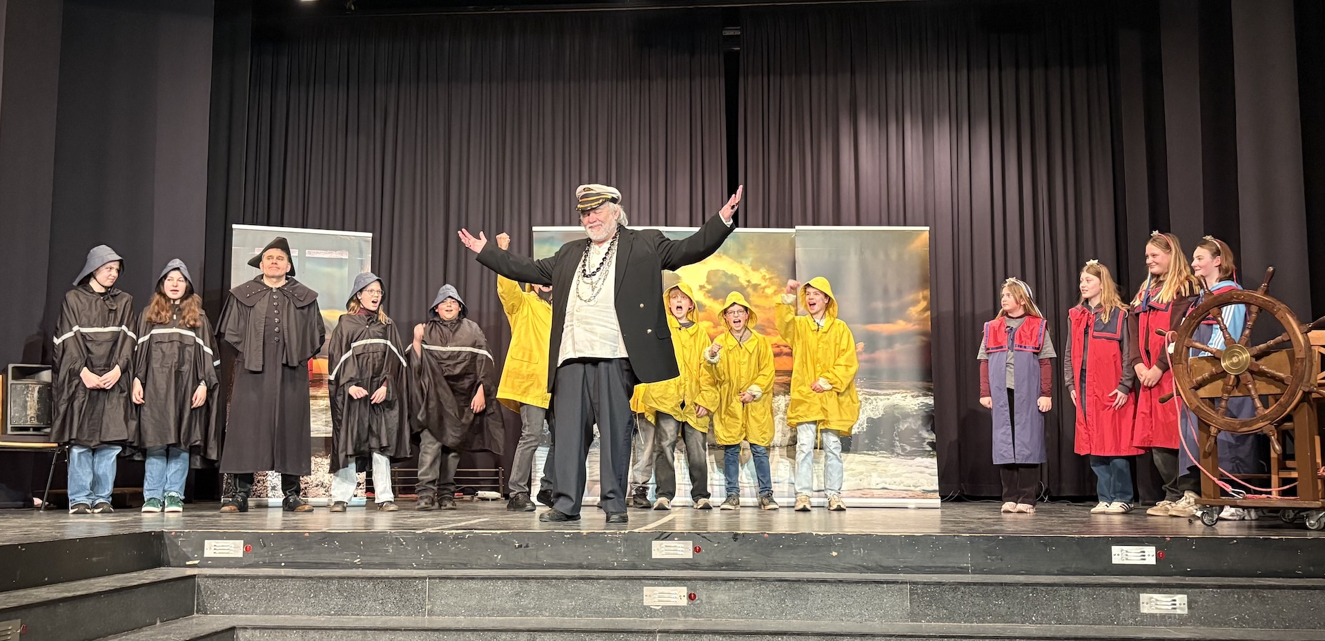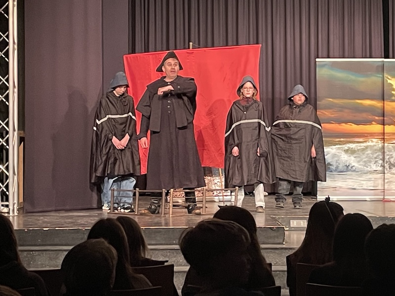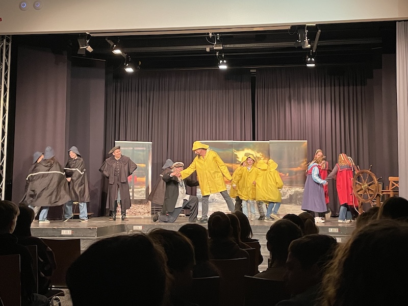 Die Schüler:innen bereiteten sich viele Stunden zuvor mithilfe der Lehrkräfte Claudia Brägelmann, Christiane Maurer und Stefan Gehring auf die Oper vor, denn auch einige Schüler:innen durften mitspielen und sogar Sprechrollen übernehmen. Unter professioneller Anleitung der Darsteller:innen Anita (Senta), Peter (Holländer), Heinrich (Daland) und Gregor (Steuermann/ Erik) haben die Sechstklässler:innen schließlich sehr überzeugend in passenden Kostümen geschauspielert. Das Ensemble war auch durch mitgebrachte Requisiten wie Hintergründe, ein Boot und andere Gegenstände perfekt vorbereitet, sodass man deutlich merkte, dass sie Profis sind.