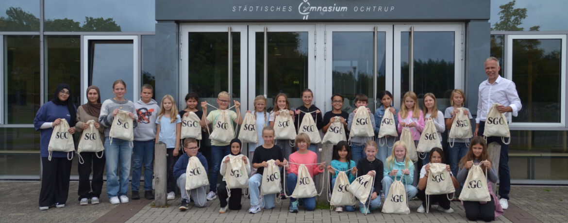 Turnbeutel mit Überraschungen für die neuen Fünftklässler:innen Am 27. August 2025 durften wir unsere neuen Fünftklässler:innen herzlich an unserer Schule willkommen heißen. Als besondere Überraschung erhielten alle Kinder von der Schülervertretung (SV) einen Turnbeutel, gefüllt mit ein paar Kleinigkeiten, wie z.B. einer Trinkflasche. Die Beutel gehören gleichzeitig zu unserem offiziellen Schulmerch und sollen den neuen […]