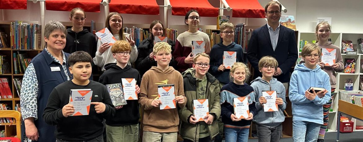 Preisverleihung des Känguruwettbewerbs der Mathematik 2025 Beim diesjährigen Känguruwettbewerb zeigten sich die Organisatoren sehr zufrieden mit dem Verlauf. In diesem Jahr wurde die Teilnahme erstmals für alle Klassenstufen ermöglicht, sodass alle mathematikbegeisterten Schüler:innen teilnehmen konnten. Zwei von ihnen durften sich über tolle Preise freuen. Besonders hervorzuheben ist Noah Huesmann (6b), der mit einer perfekten Punktzahl […]