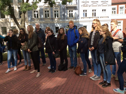 29 Schülerinnen und Schüler des Städtischen Gymnasiums Ochtrup waren Gäste bei ihren polnischen Partnern in Wielun. Nach einem herzlichen Empfang der Jugendlichen durch Schulleiter Zbigniew Wisniewski und seiner Stellvertreterin Elzbieta Kostrzewa schlossen sich eine Schulführung, die Besichtigung des Heimatmuseums in Wielun, ein historischer Stadtrundgang und Besuche weiterer Sehenswürdigkeiten an. Auch der stellvertretende Landrat des Kreises Wielun Marek Kieler sowie der Sekretär des Landratsamtes Andrzes Howis begrüßten die Schülerinnen und Schüler sowie ihre Begleiter Klaus-Werner Heptner, Andrea Torunsky und Monika Fahlbusch. Dank galt der Deutschlehrerin Barbara Pozuczek, die vom ersten Austausch im Jahre 2005 bis heute einen großen Anteil am Gelingen des Austauschs hat. Die Fahrt nach Breslau war ein weiterer Höhepunkt der Fahrt, die, da auch in diesem Jahr wieder einige Mitglieder der Bigband dabei waren, immer wieder durch gemeinsames Musizieren den Kontakt unter allen Beteiligten erleichterten, frei nach dem Motto „Musik kennt keine Grenzen“.