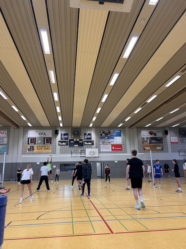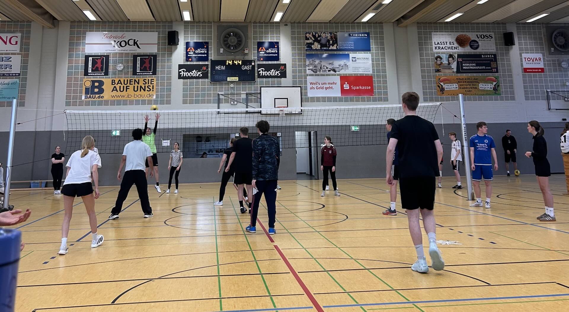 Am vergangenen Donnerstagnachmittag, einen Tag vor der Ausgabe der Halbjahreszeugnisse, fand das alljährliche Volleyballturnier der Oberstufe statt. In spannenden und fairen Spielen traten die Schüler:innen der EF und der Q1 gegeneinander an. Gespielt wurde in einem A- und einem B-Turnier, sodass alle Teams ihr Können unter Beweis stellen konnten.
