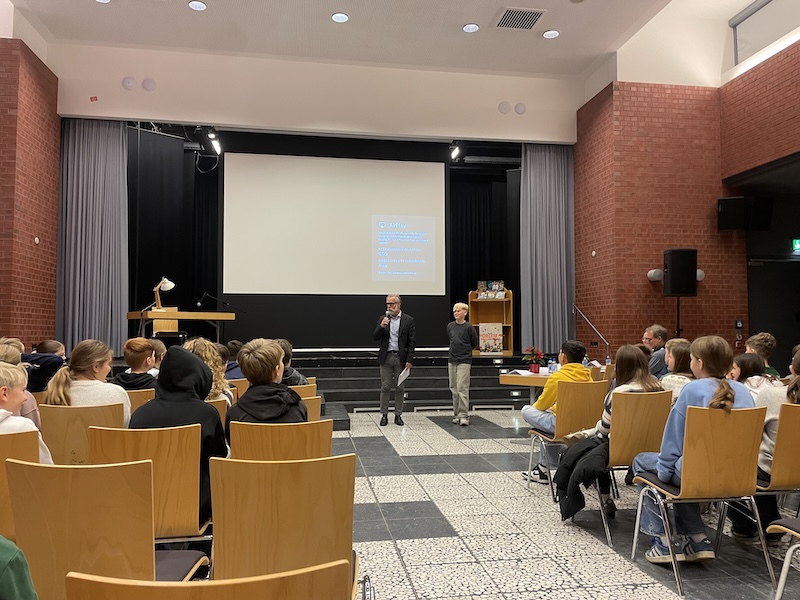 Vor den Winterferien fand an unserer Schule der jährlich stattfindende Vorlesewettbewerb der sechsten Klassen statt. Traditionell treten dabei insgesamt 8 Schüler:innen gegeneinander an, wobei jede Klasse 2 Teilnehmende stellt, die in einem Klassenentscheid ermittelt werden. So war es auch in diesem Jahr.